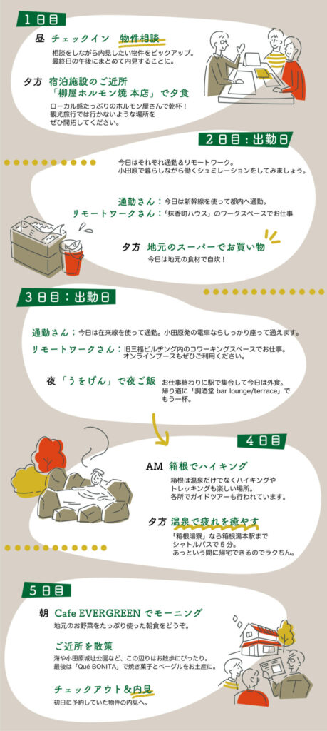 ※通常は3泊が上限ですが、小田原から実際のお勤め先までの通勤を試してみたい方は、6泊まで延長も可能です。ご相談ください