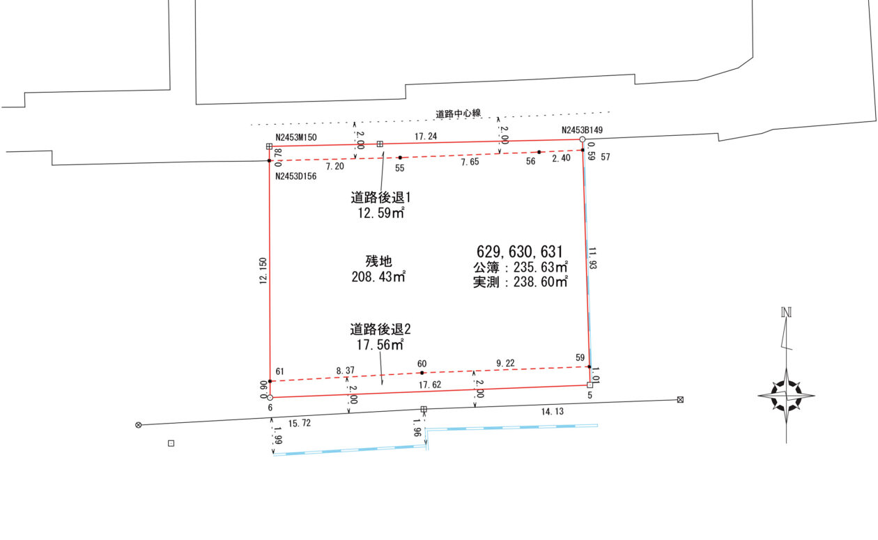 備考 | ※北側約12.59㎡および南側17.56㎡のセットバックが必要です(残地:約208.43㎡) ※建築条件はありません。 |
