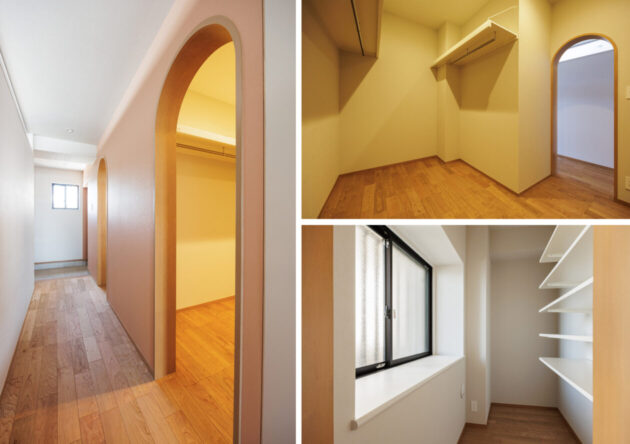 WICとSICはドアのないオープン収納。アールのついた開口がやさしい表情です