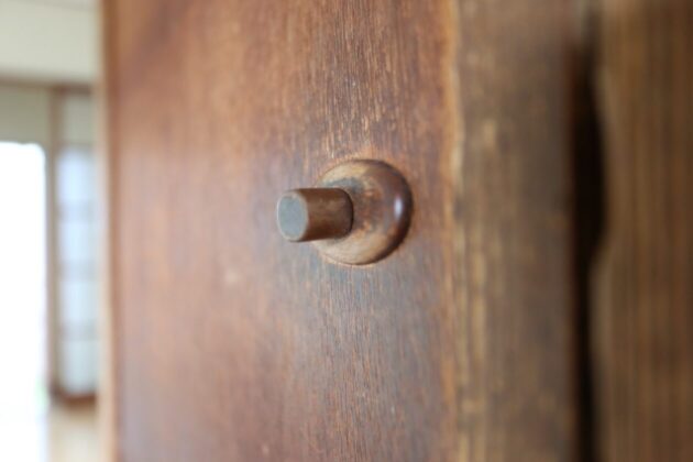 トイレの鍵は木の取手をスライドするだけの昔ながらのもの。