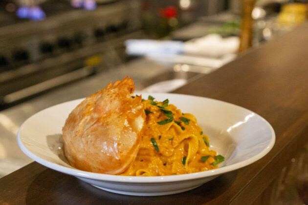 ぎゅぎゅっと濃厚な味わいの「鳥取県産紅ズワイ蟹のトマトクリームソース 自家製タリアテッレ」(写真は大盛りです)