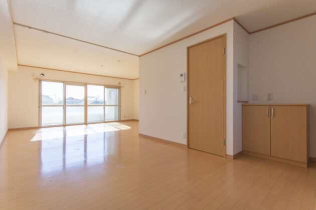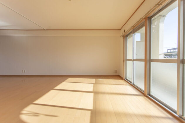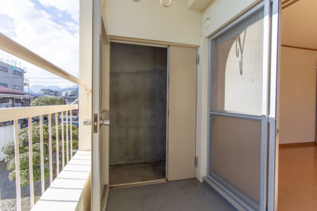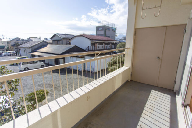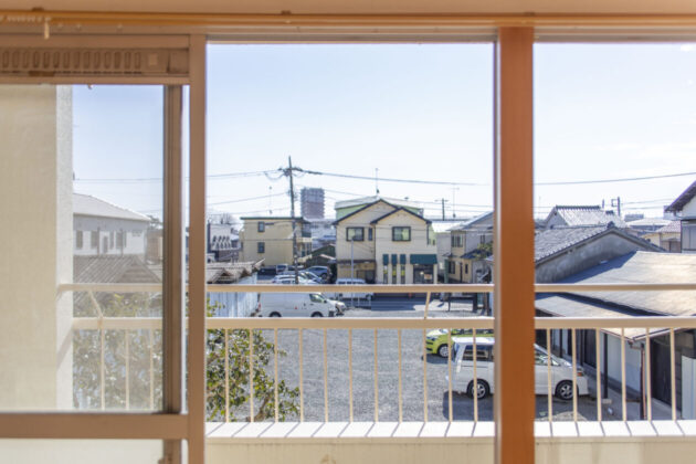 なんたって、真南に向いたこの陽当たりの良さがいいのです。観葉植物もベランダ菜園も、元気に育ってくれそう。さらに目の前が駐車場で窓の向こうがスッキリ開けてるのもすてきじゃないですか(入居者さんはこちらの駐車場を1台分無料で使えます)。うんうん、これはちょっと映画っぽい。理想的。