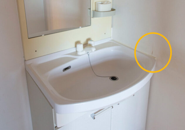 洗面室のクロスです。洗面台の横部分が浮いています