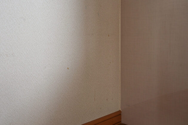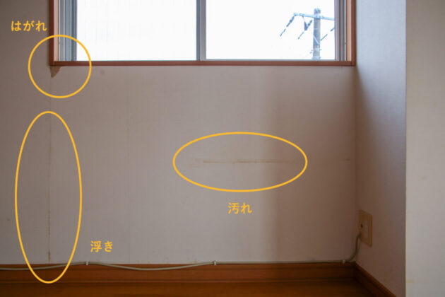 角部屋のクロスです。汚れ、浮き、はがれがあります