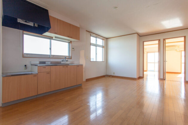 LDKを別方向から。写真左手の引戸の奥は洗面室と浴室