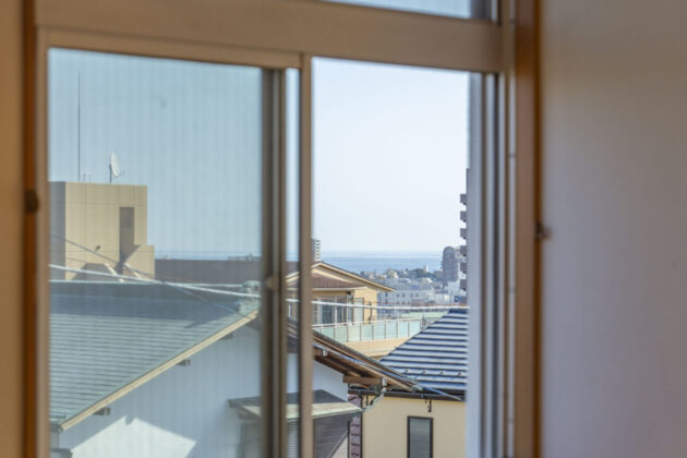 東側の窓からはチラリと水平線が