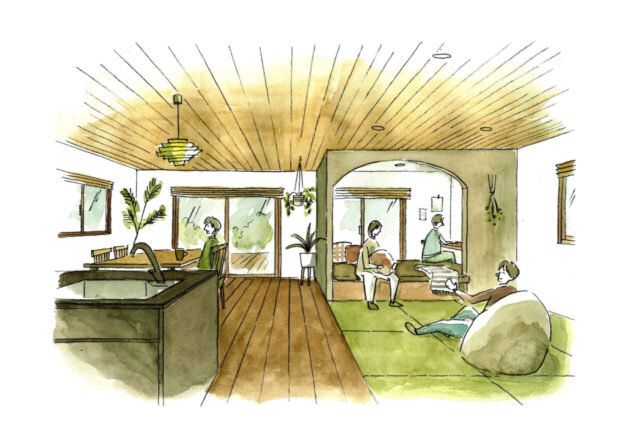 施工を通してお施主さまがご満足くださったのは、イメージを越える提案力。プロならではの視点でのご提案を喜んでくださいました。有り難いお声を頂戴しています。 建築士による手描きパース