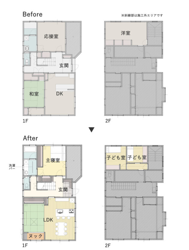 ▼同じく、子育て世代のご家族が築30年ほどの一戸建てをリノベーションした事例です