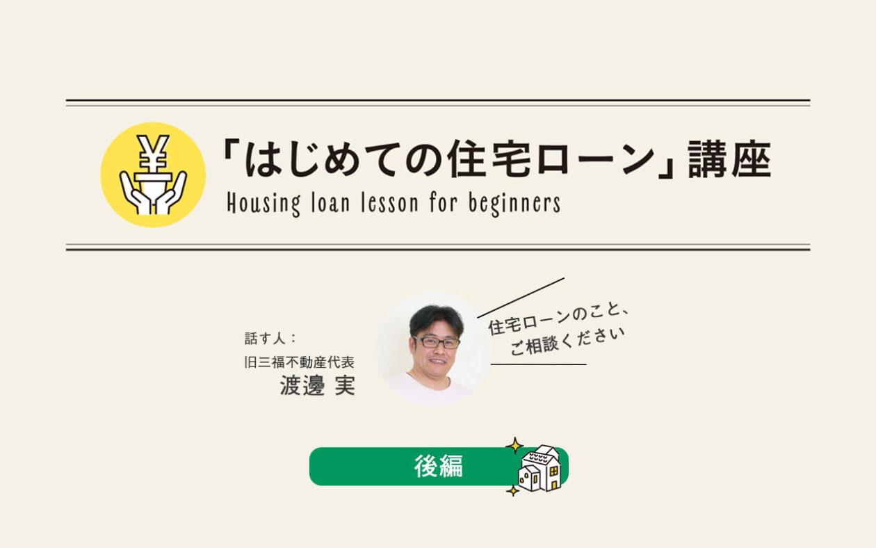 これからおうち(戸建・マンション)を購入したい方、購入したおうちをリノベしたい方はきっと気になる、住宅ローンのこと。まずは入門編として、基本の“き”を知っていきましょう!金融機関で14年間の勤務経験のある、旧三福不動産代表の渡邊がわかりやすくご紹介します。今回は後編です。