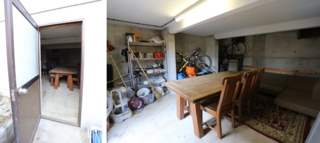 外から入ることのできる物置部屋は土間打ちされており、お庭で使うものをしまうのにぴったり