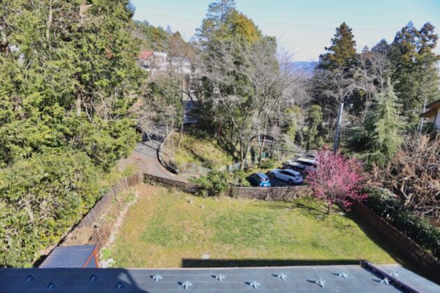 窓からはお庭と緑を一望できる景色。春になると桜の借景を楽しめるそう