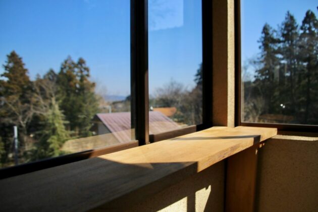 この小さな窓辺のカウンターでコーヒーを飲みながら、空と緑を眺める。