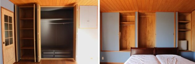 南西側と北東側の壁、それぞれほぼ一面が収納となっています