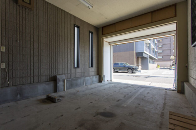 約5mの奥行きと約3.6mの間口の電動シャッター付きのインナーガレージ