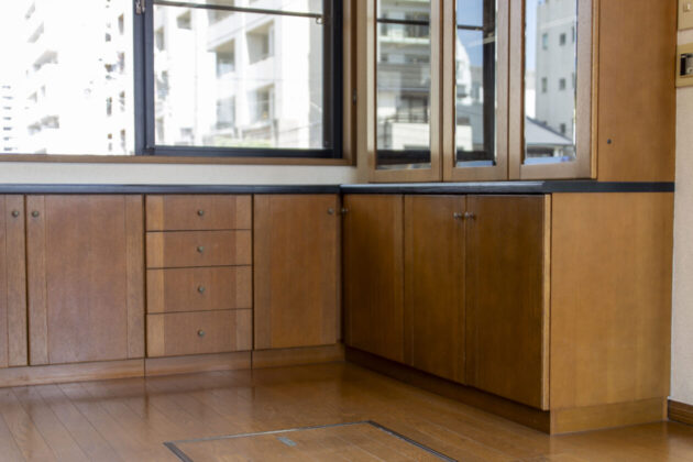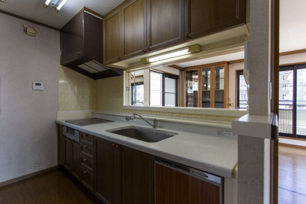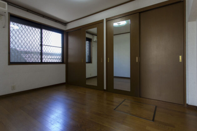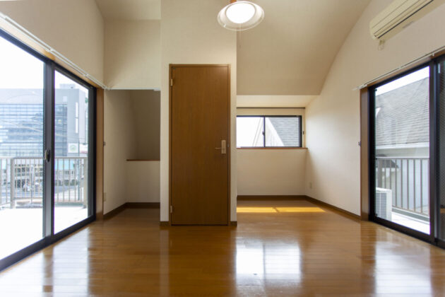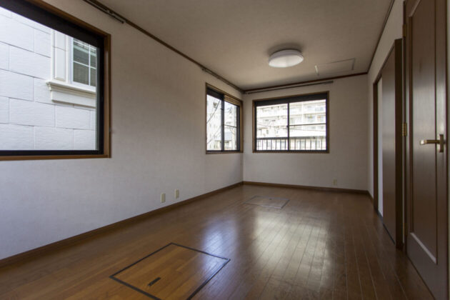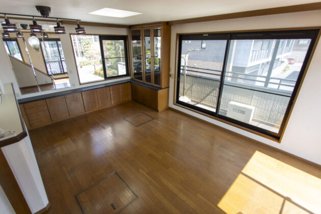 キッチンの隣にあるのは9帖の広々した洋室。なんとなく家族の気配を感じられる空間です。お隣さんが間近に迫ってはいますが、このお部屋も3面採光でちゃんと明るいです。