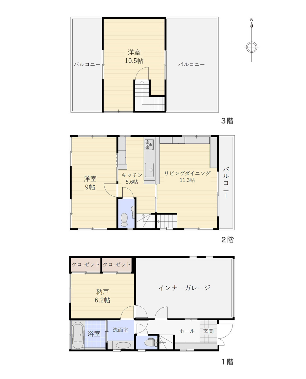 | 設備 | ガスコンロ,三口コンロ,食器洗い乾燥機,給湯,追い焚き,洗髪洗面化粧台,温水洗浄便座,エアコン,室内洗濯機置き場,TVドアホン,都市ガス,公営水道,排水下水,駐車場有 |