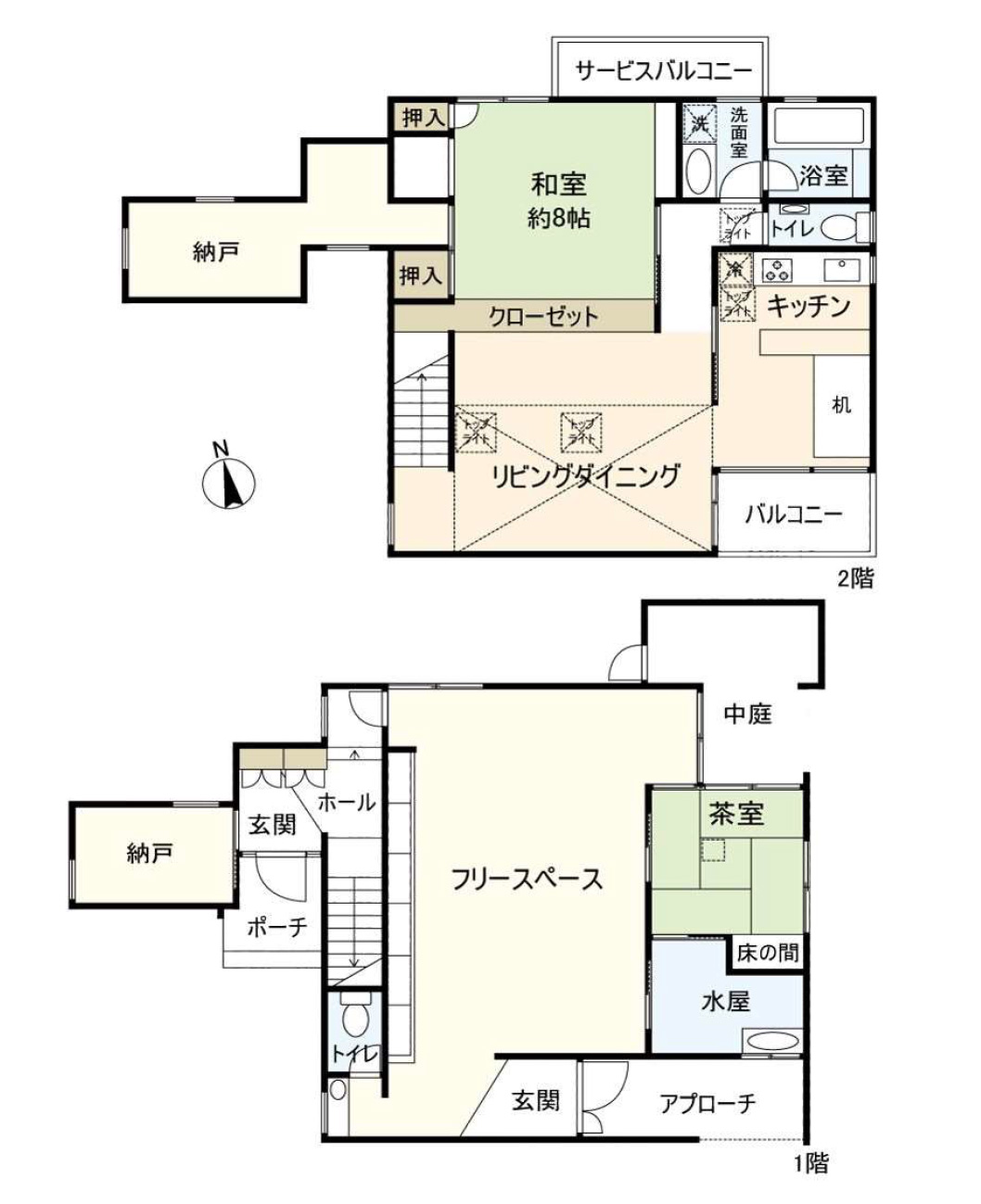 | 面積 | [敷地]135.53㎡[建物]1F:66.92㎡ 2F:72.52㎡ |
