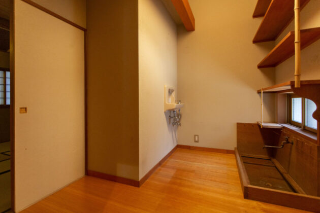裏手にはもちろん水屋のある、実用的な茶室です。ここをそのまま茶室として使ってくれる方と出会えたら、鈍翁も喜ぶのでは…!