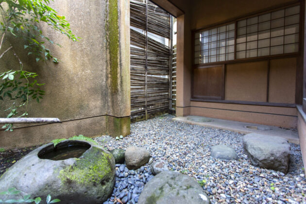 手水鉢のある中庭
