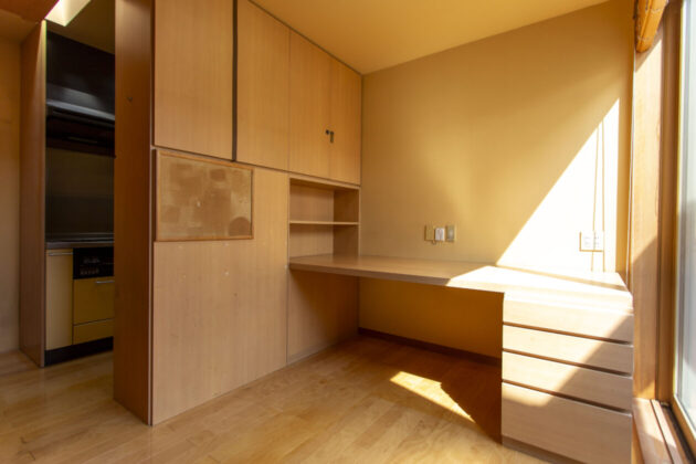 あえて光を遮断していた1Fに対して窓がたくさんあるフロアで、リビングダイニングには明るく朗らかな空気が漂います。どこか和を感じさせるこの壁の色は、日本の伝統色においては「淡黄色(たんこうしょく)」と呼ぶようです。