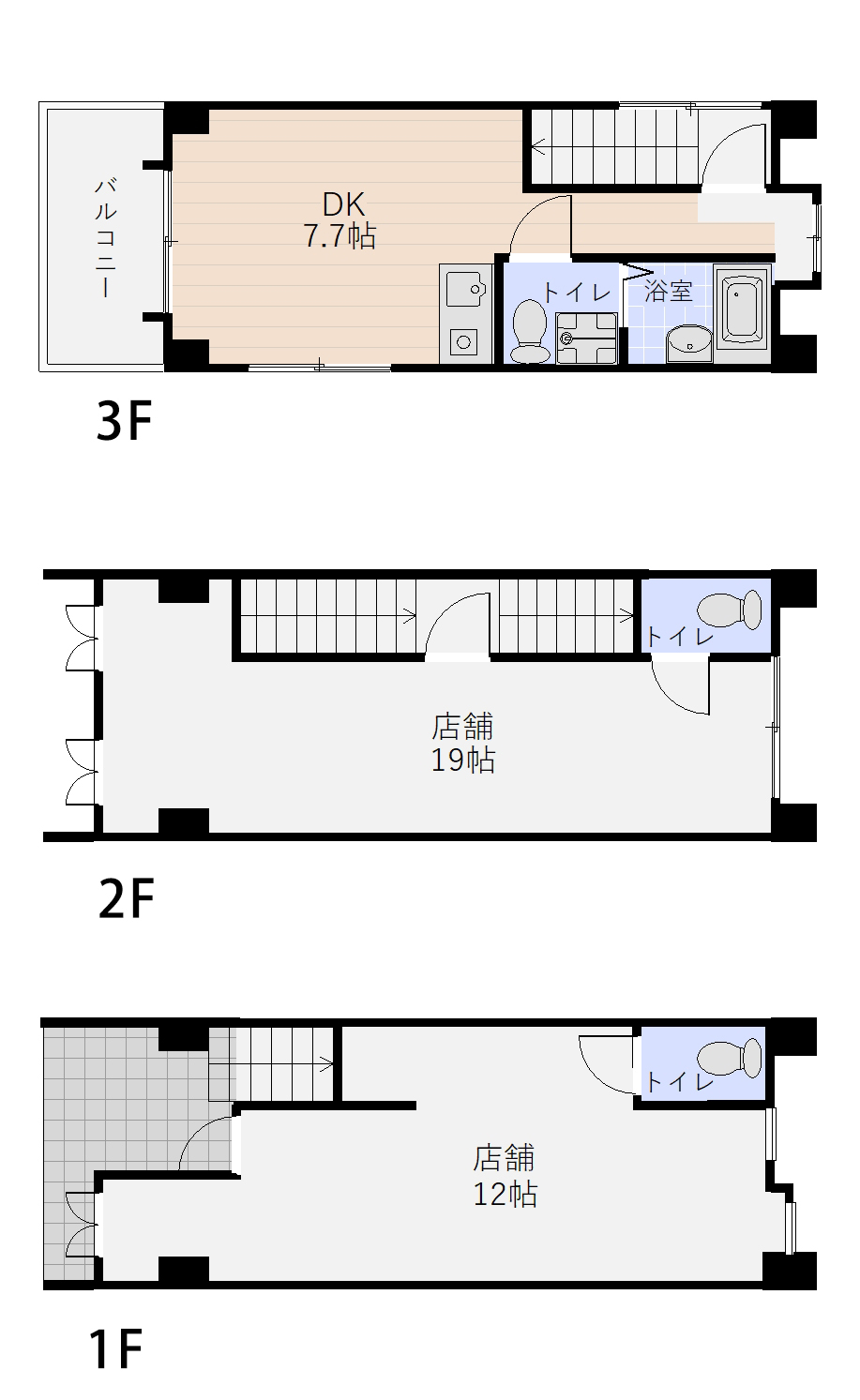 1Fを入口側から。奥の扉はトイレ室です