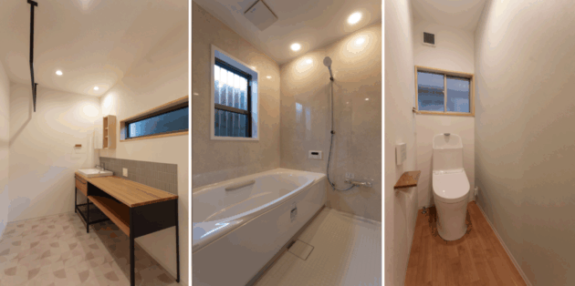 プランニングをする時にここに住む人としてイメージしていたのは、お子さんと一緒に移住してくるファミリー。働き盛りの忙しいパパママを少しでも助けられたら、と水回りがキュッとまとまった効率のいい家事動線になっています。