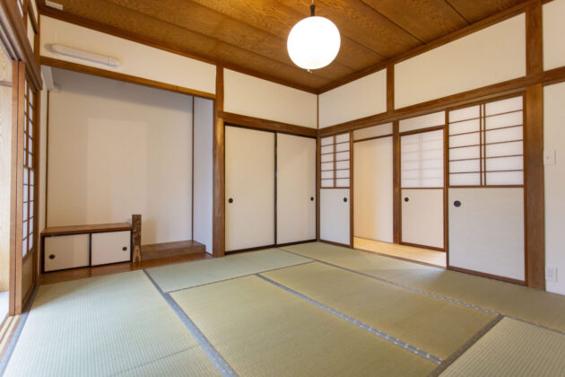 南側の和室。押し入れのなかはハンガーパイプを設置したクローゼット状になっています