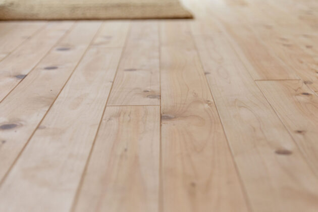 フローリングはちょっと贅沢に、足ざわりのいいヒノキの無垢材です