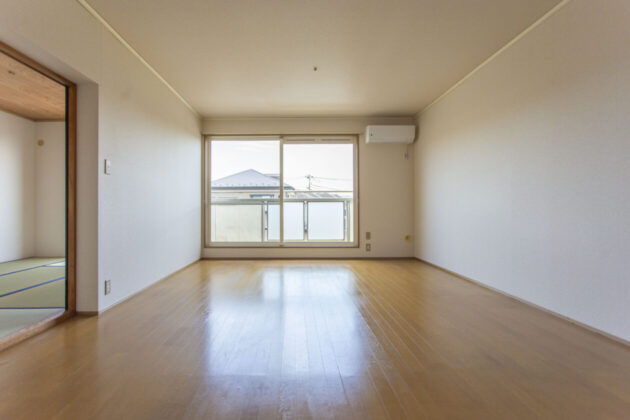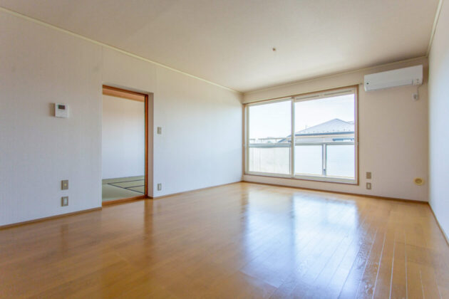 まずはLDKのこの幅広で大きな掃き出し窓がすごくいい!この窓を見て一気にテンションが上ってしまいました。