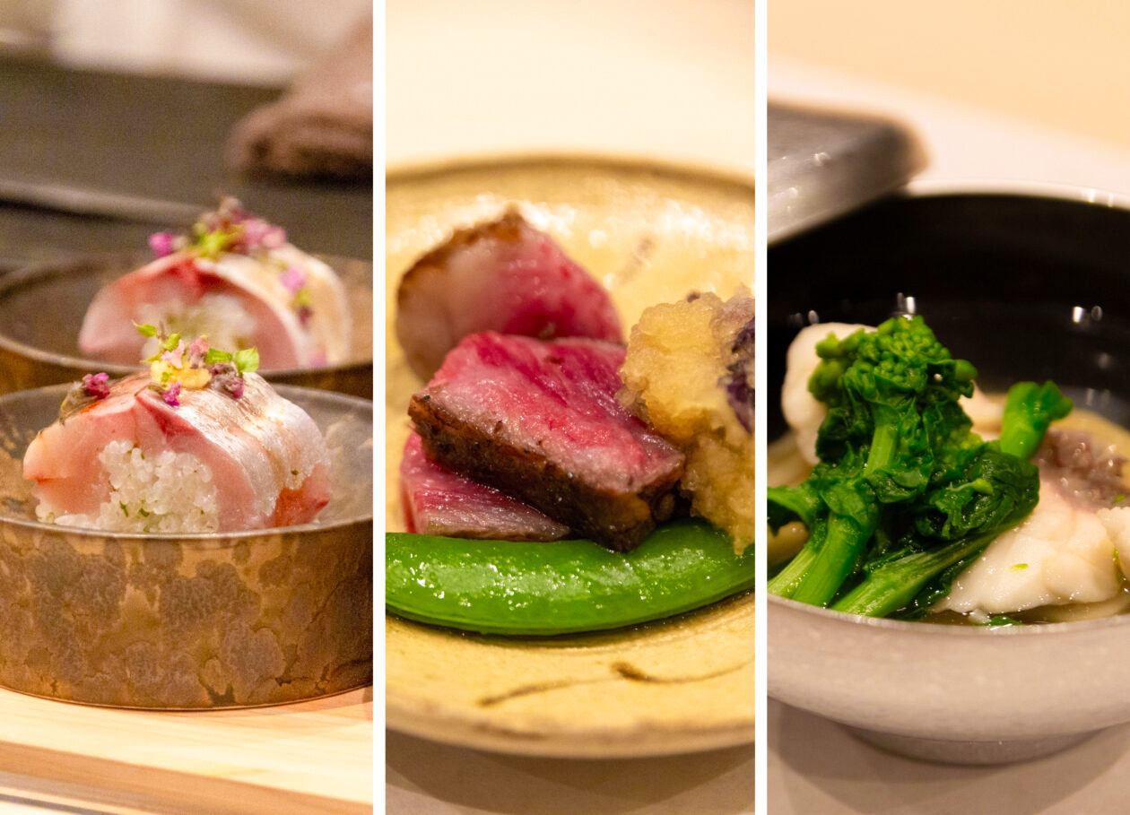 「和食 髙はし」のコースは、舌だけでなく五感すべてで楽しむエンターテイメントのようでした。目を引く美しさ、すぐそこで調理される香り、リズミカルな包丁や揚げ物の音。3時間があっという間で、最初から最後までずっと幸せな晩餐になりました。この時間をぜひ実際に体験してみてほしいです、とおふたり。食材、お酒、調理、サービス…そのどれもがお客さまに最高の食体験をしてもらいたい、という思いで丁寧に作り上げられています。おふたりの心尽くしのおもてなしを、ぜひ受け取りにいらしてください。