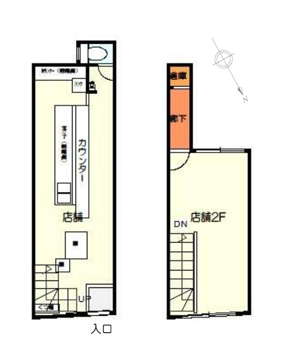 フロアが細長いので、1階は現状と同じカウンタースタイルが合いそう。意外と小田原には少ない立ち呑み屋さんなんてしっくり来ます。サクッと食べられるうどん屋さんとか、イートインもテイクアウトもできるおにぎり屋さんなんかも昼夜問わず人気が出るかもしれません。ただダムウェーターがないので2階への商品提供には階段の昇り降りが必要になります。
