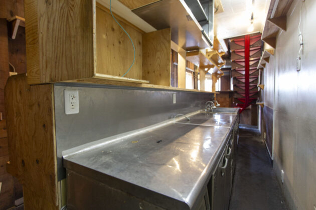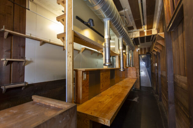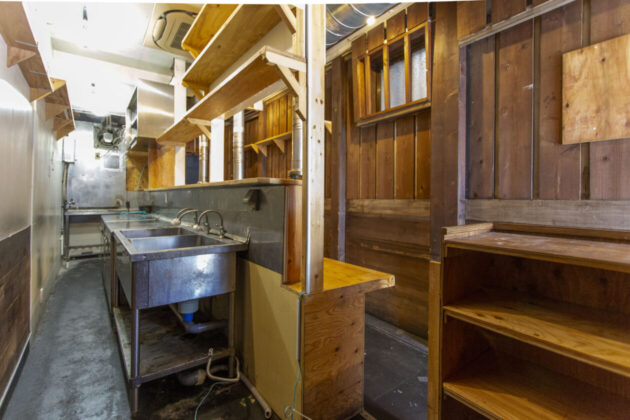 一棟貸しと言っても40.02㎡と比較的コンパクト。焼肉屋さんの居抜きで、ダクトやシンク、コールドテーブルなどが残されています。