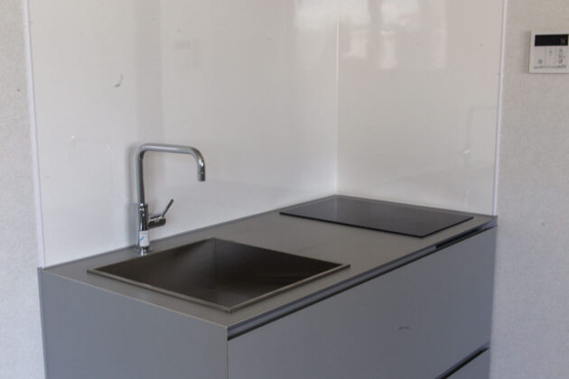 コンパクトですがIHコンロは2口です。ミニマルで無機質なデザインがかっこいい