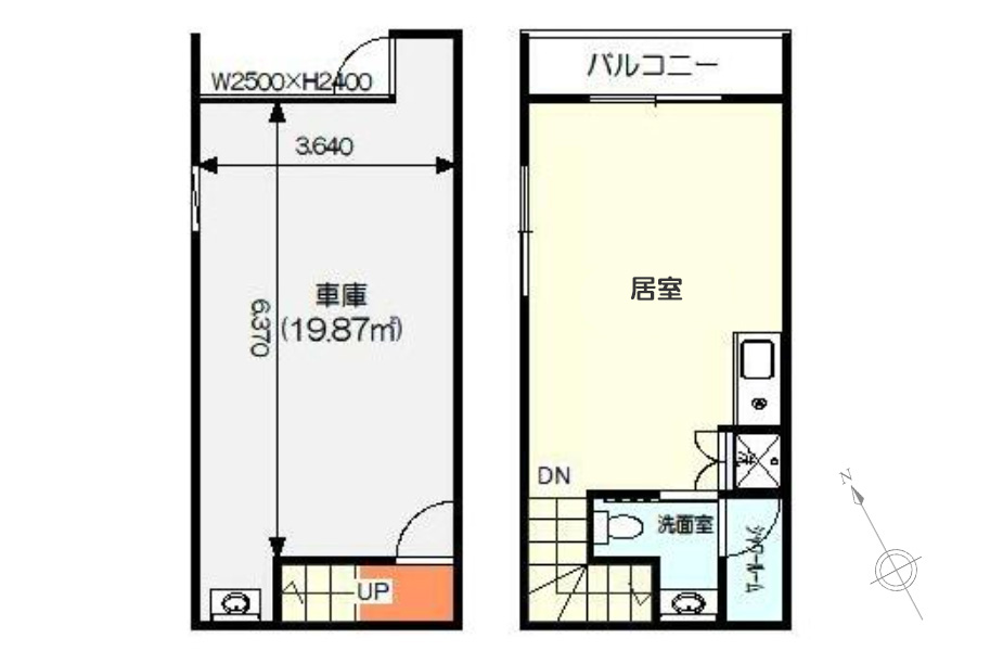 趣味に生きる(生きたい)あなたに贈る、ガレージ付きのワンルームです。1階が19.87㎡の電動シャッター付きガレージ、2階が居室になっているテラスハウス。この潔い間取り、趣味に振り切って暮らしたい人にピッタリだと思うんですよねぇ…!